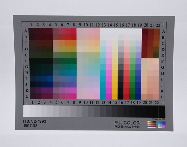 昔スキャナーを買った時に付いてきたカラーチャートが出てきたので、白い紙の上に置いて撮ってみました。かなり古い物だから、正確なチャートとしては使えないんだけどね。器具の違いや反射光等によるバラツキもあるから、あまり当てにならないかもしんない?(a)〜(c) と同条件にしたら(c) が暗く青くなってしまったんで(リアルクスは5000K、FPL27ANXは5500Kの光色となっています)そこで(c) を(a) に近づけるべく仕上げたのが(d) です。